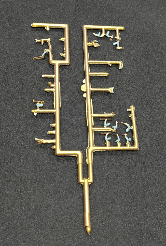Descripción: fragmento de una estructura de poliestireno inyectado con piezas para modelismo. Marca desconocida. Los modelos fueron utilizados en la confección de la serie Maquetas bélicas.