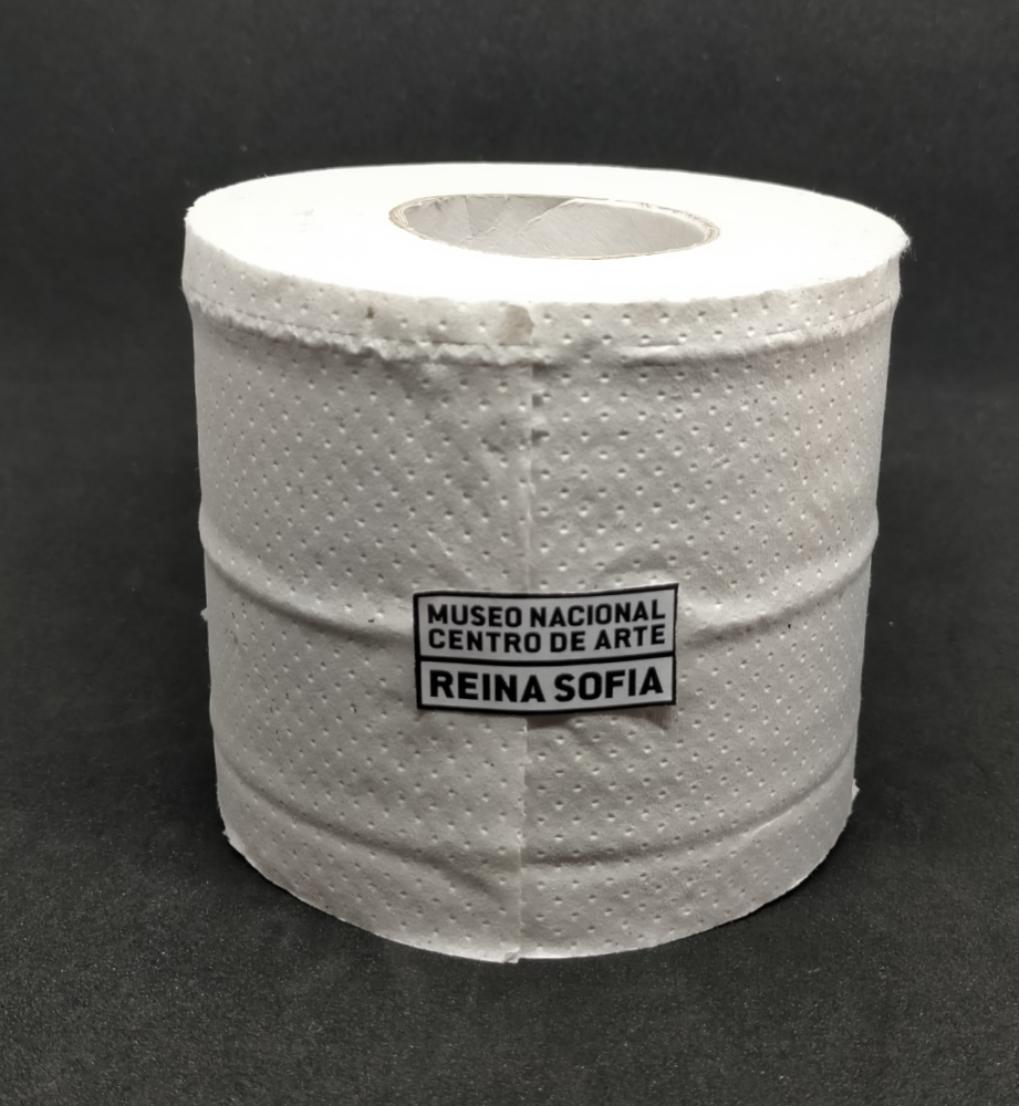 DESCRIPCIÓN: sobrante de un rollo de papel higiénico industrial (40 cm. de diámetro), tras ser utilizado por los visitantes en los baños del Museo Nacional Centro de Arte Reina Sofía. Pieza colaborativa. No se conservan registros de las estampaciones originales.