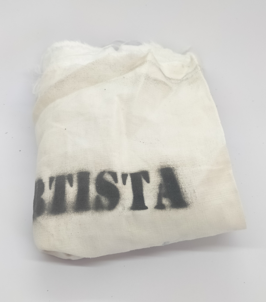Tela con la palabra «artista» impresa con pintura negra por medio de un stencil. Fue usada como venda para tapar los ojos en la performance colectiva Manifest-acción, el 14 de mayo de 2011 frente al Museo del Prado.