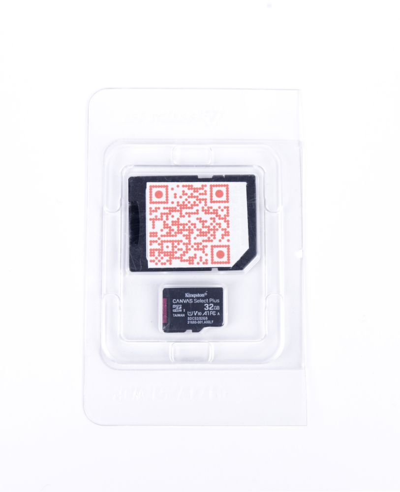 Tarjeta de memoria con 59 tomas descartadas en la edición de los vídeos de la obra Una Historia de Fantasmas. Fecha: 2022. Medidas: 85,2 x 54,8 x 4,5 mm. Materiales: tarjeta mini SD de 32 Gb, adaptador SD, adhesivo impreso y funda de PET termoformado. http://www.nievescorrea.org/una-historia-de-fantasmas/